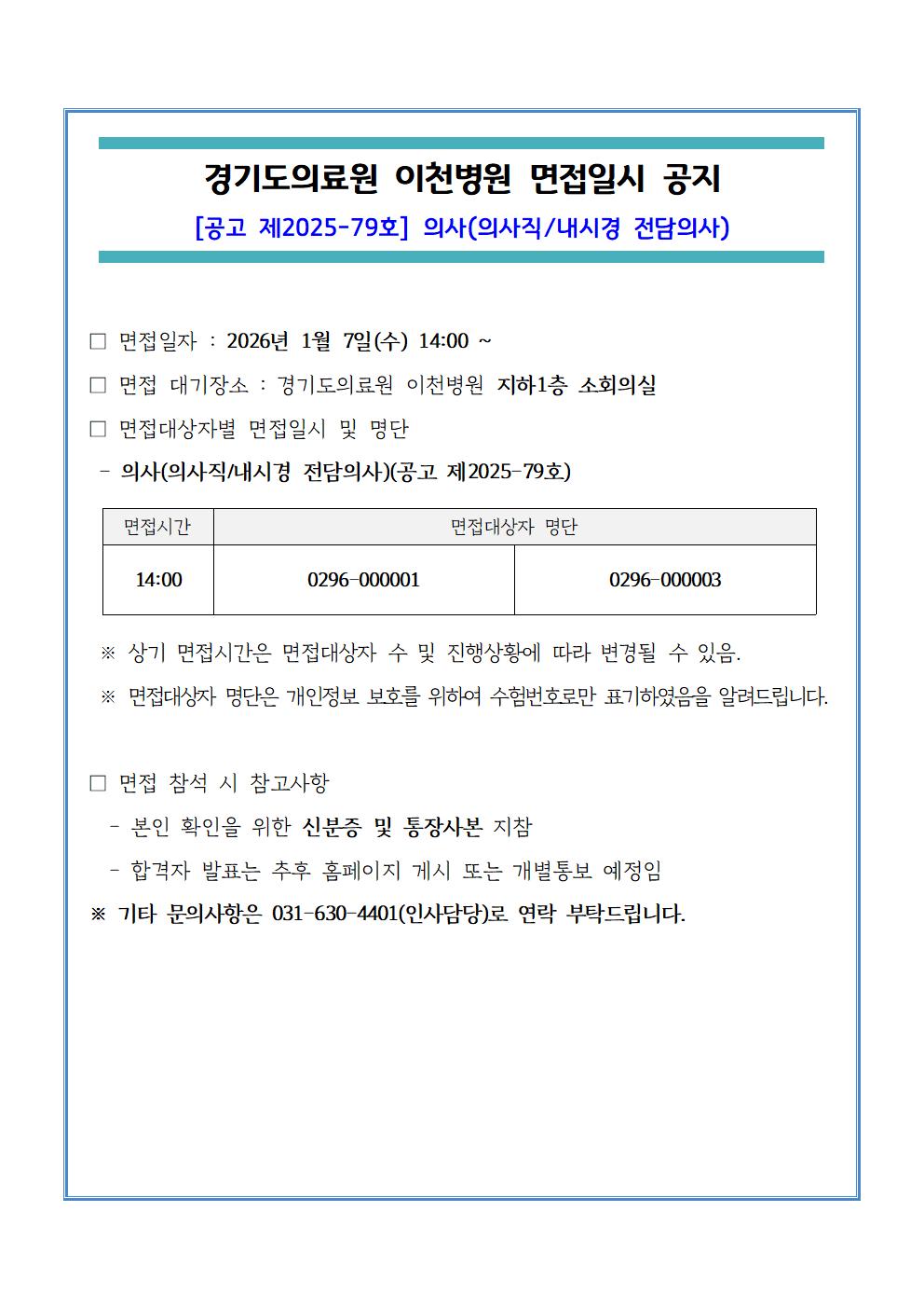 서류전형 합격자 발표 및 면접전형 안내(2025-79호 의사/의사직 내시경 전담의사)
