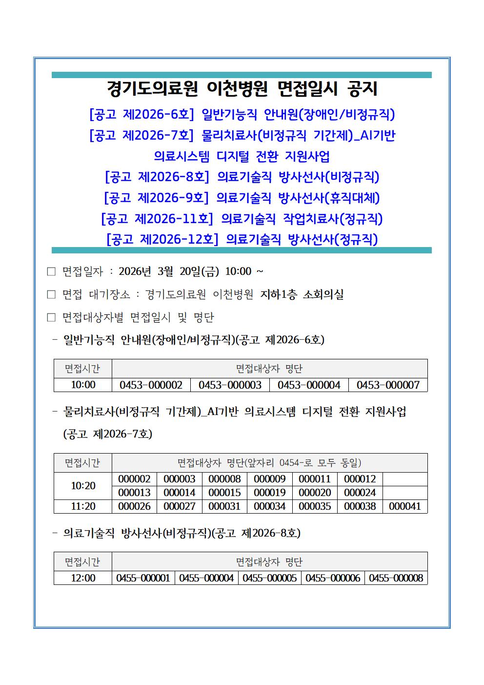 서류전형 합격자 발표 및 면접전형 안내(2026-10호 의사직 응급의학과 전문의)