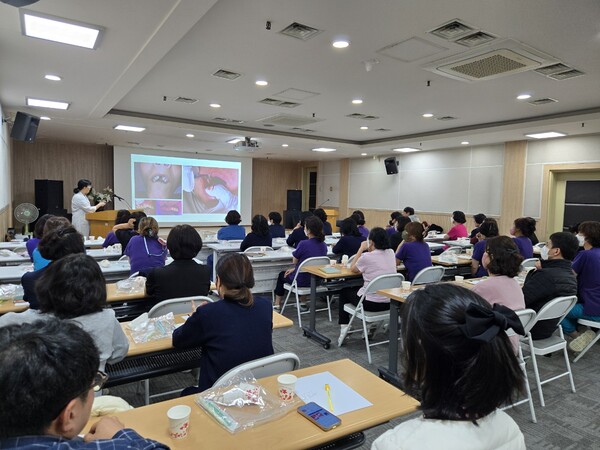 교육은 프리랜서 정민숙 치과위생사가 진행했으며, ▲올바른 칫솔질 방법 ▲구강 내·외 마사지법 ▲틀니의 세척 및 보관법 등을 이론과 실습으로 구성해 참여자들이 실제 현장에 즉시 적용할 수 있도록 실습 중심으로 진행됐다.