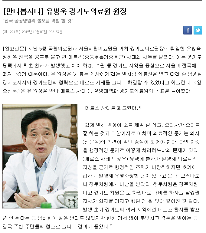 [수원]일요신문 지난 메르스 사태에 관한 유병욱 원장님의 인터뷰