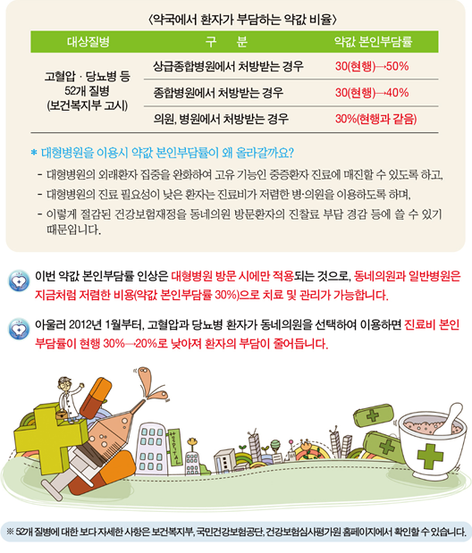 경기도의료원 이천병원은【2014년 3월 3일】병원에서 종합병원으로 전환됨에 따라 고혈압 등 52개 질병치료를 위해 약 처방을 받을 경우, 환자가 부담하는 약값은 10% 인상됩니다.(보건복지부)